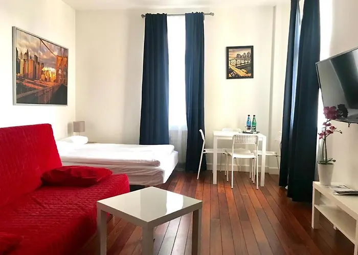 Das 40 m^2 große Apartment Ferienwohnung Apartament New York befindet sich im Viertel Stare Miasto von Posen, in 9 Fußminuten Entfernung vom Strand Plaza miejska Chwaliszewo. Das 1-Zimmer-Apartment bietet WLAN im ganzen Gebäude.